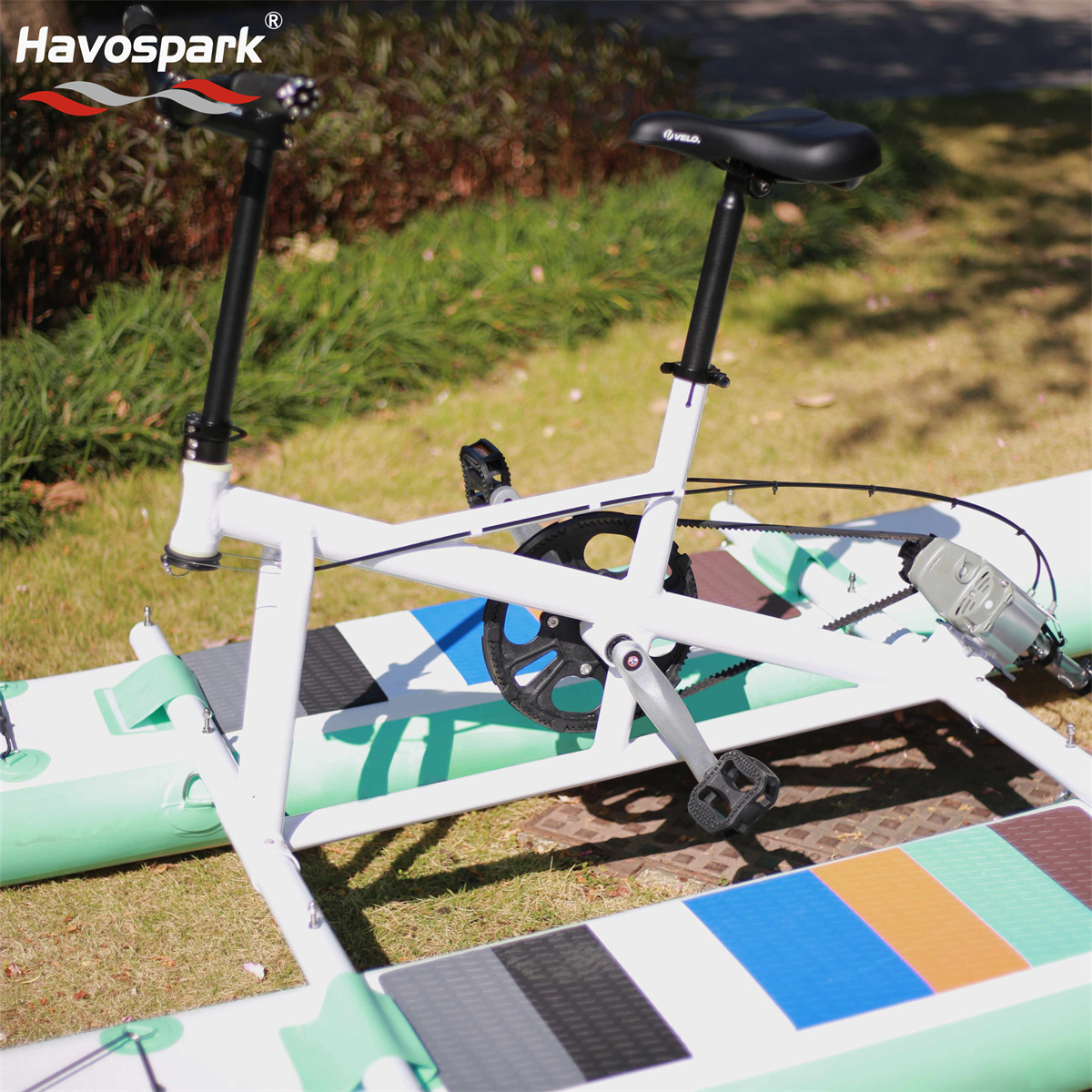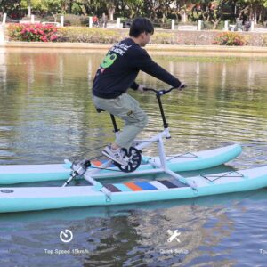 Xe đạp nước Croco-1 là một chiếc xe đạp hiệu suất cao chạy bằng bàn đạp, cho phép bạn đạp xe ở tư thế truyền thống để tận hưởng môn thể thao trên bất kỳ vùng nước yên tĩnh nào. Được làm bằng hợp kim nhôm với lớp sơn tĩnh điện, nó có thiết kế tháo lắp nhanh gọn gàng, trọng lượng tương đối nhẹ và có thể đặt và di chuyển trong cốp xe sau khi gấp lại. Được trang bị chân vịt xuyên mặt nước, nó có thể di chuyển qua vùng nước nông. Hệ thống điều khiển hướng không cần bánh lái giúp xe ổn định, đáng tin cậy và dễ bảo trì.